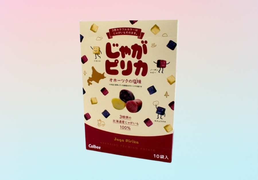 The name "pirika" comes from the language of the Ainu people indigenous to Hokkaido and means – wait for it – "cute." And indeed the Calbee Jaga Pirika Potatoes are cute, thanks to their lively, multicolored appearance, which is owed to the fact they are made of three potato varieties (Toyoshiro, Northern Ruby, and Kita Murasaki) – all grown in Hokkaido.